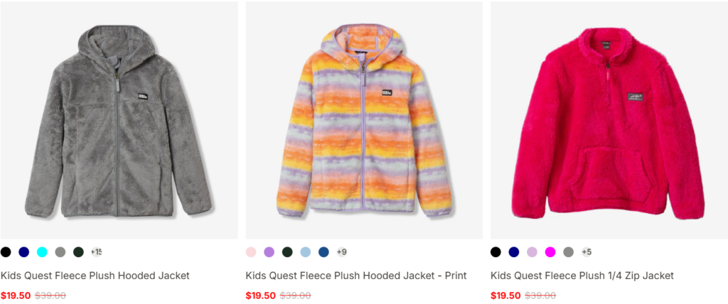 • Quest Fleece Collection: Their signature plush fleece jackets, hoodies, and pullovers (starting at $19.50)