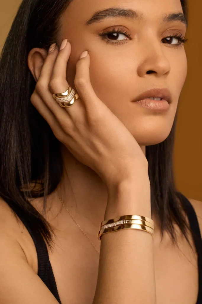 As her brand grows she finds it exciting to collaborate with other creatives. From partnerships with Paris Basketball, De Beers Group, or Sotheby’s, she’s intrigued by these opportunities–each of them has allowed her to express herself uniquely. She’s been able to add another layer of fulfillment in her work by having her jewelry as a part of the costume design for series like Insecure, Queen Sugar, and black-ish. “These moments remind me of the impact that thoughtful design can have on both individual lives and the broader cultural landscape,” she gushed.